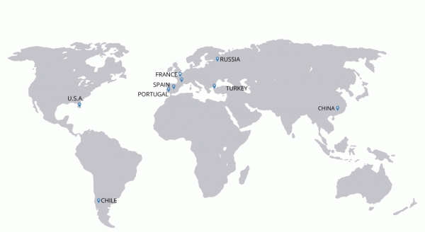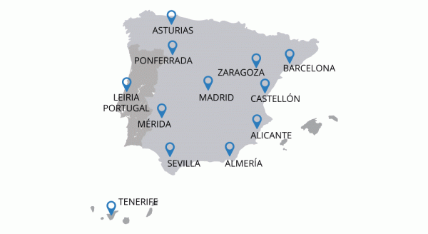 Subeler: Alicante | Almería | Asturias | Barcelona | Galicia | Madrid | Mérida | Ponferrada | Sevilla | Tenerife | Zaragoza | Chile | United States | France | Portugal | Turkey | China | Russia | Italy | Romania | South Africa | Zambia | Peru | Kazakhstan | Namibia | Indonesia